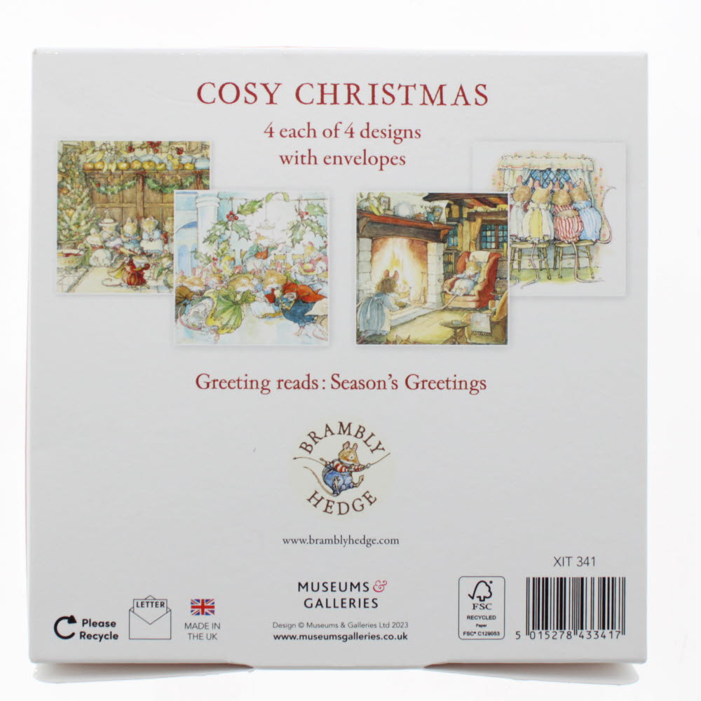 A pack of 16 Christmas cards, 4 each of 4 designs.