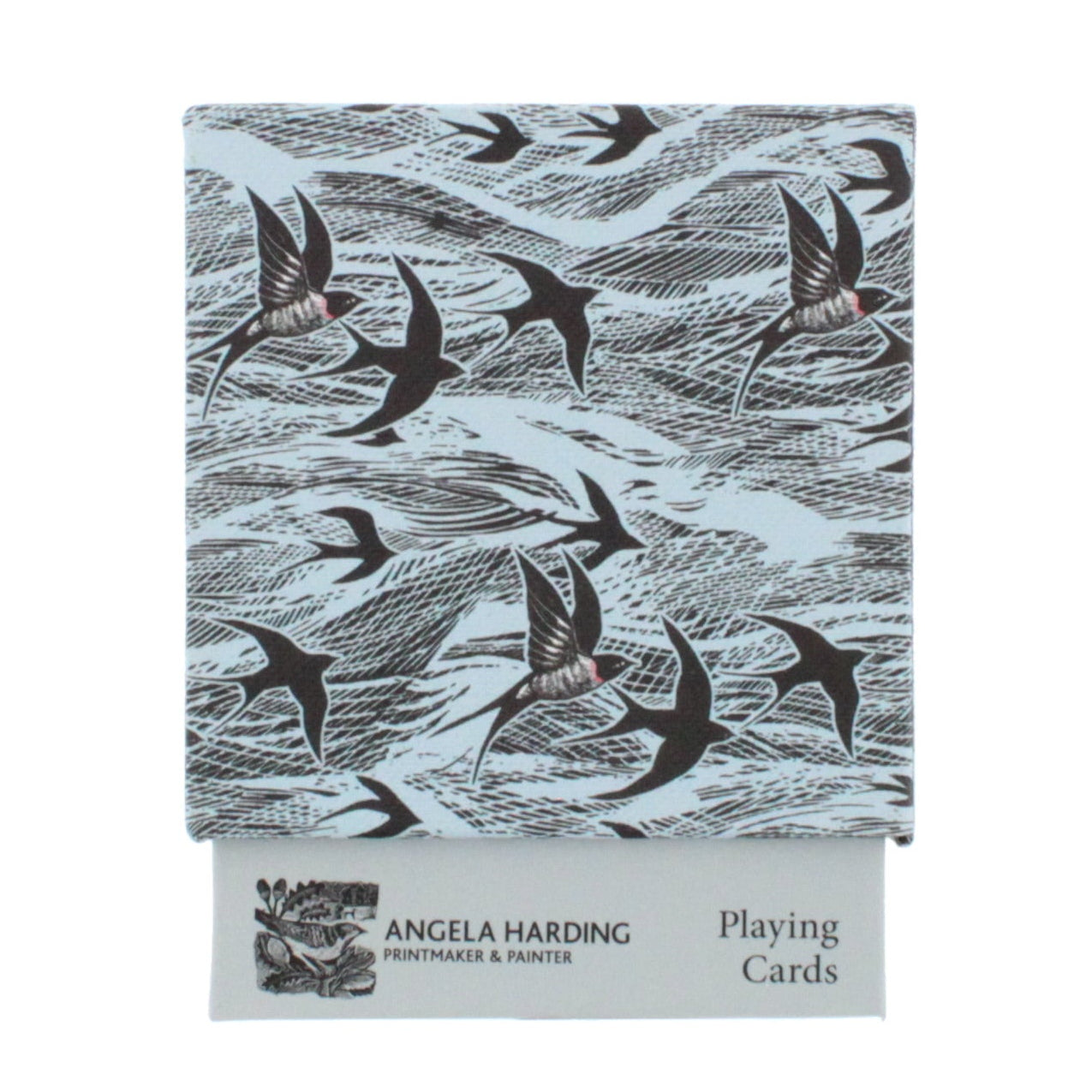 Bring a touch of artistry to your game nights with this beautifully designed set of playing cards. Inspired by Angela Harding’s original linocut and screen print, these cards combine elegance with functionality. Each pack includes a standard 52-card deck plus jokers, featuring custom illustrations on every card