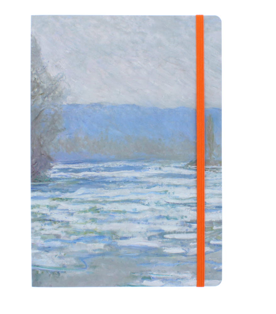 Write down your thoughts in this soft cover A5 size journal with a cover image of Ice Breaking up on the Seine, near Bennecourt by Claude Monet.