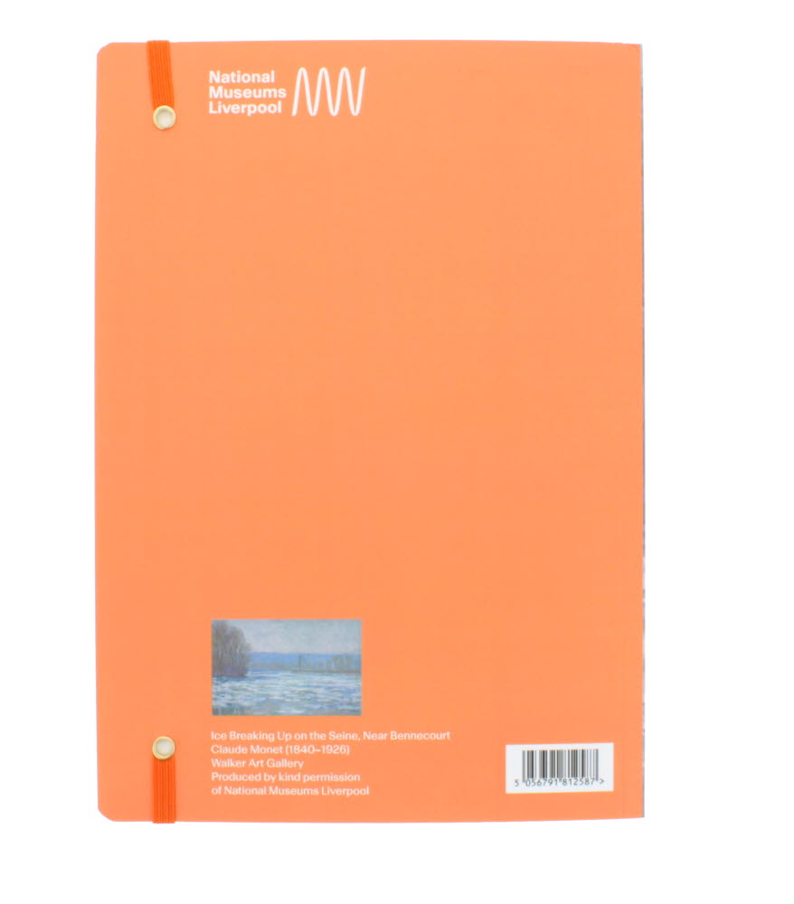 The journal is filled with lined paper and has a contrasting orange elastic closure. The journal has been designed and made in the UK for National Museums Liverpool.