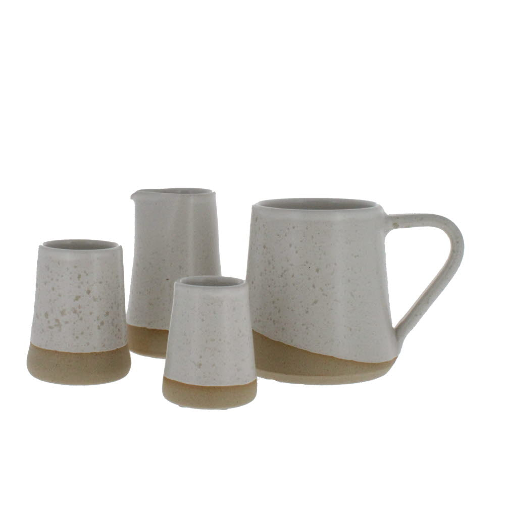 Have an elegant soiree with these mussel shoal shot glasses designed and made by Lonn Landis Ceramics. The shot glass has a natural base with a mussel shoals glaze. The shot glasses are hand made using clay from the Wirral making each cup a unique work of art.